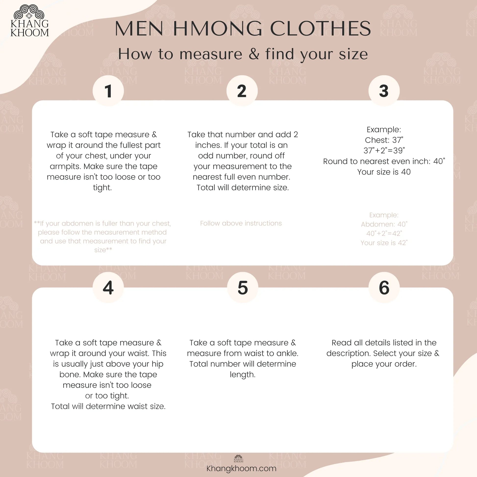 *Size 38, 42, 46 are sewn in the Hmong leeg pants style*