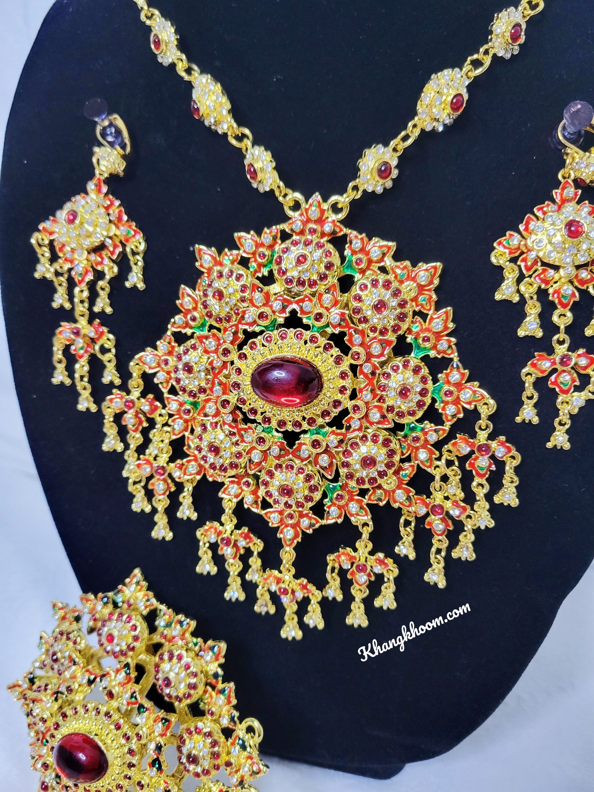 A set of gold, red and green Thai accessories set