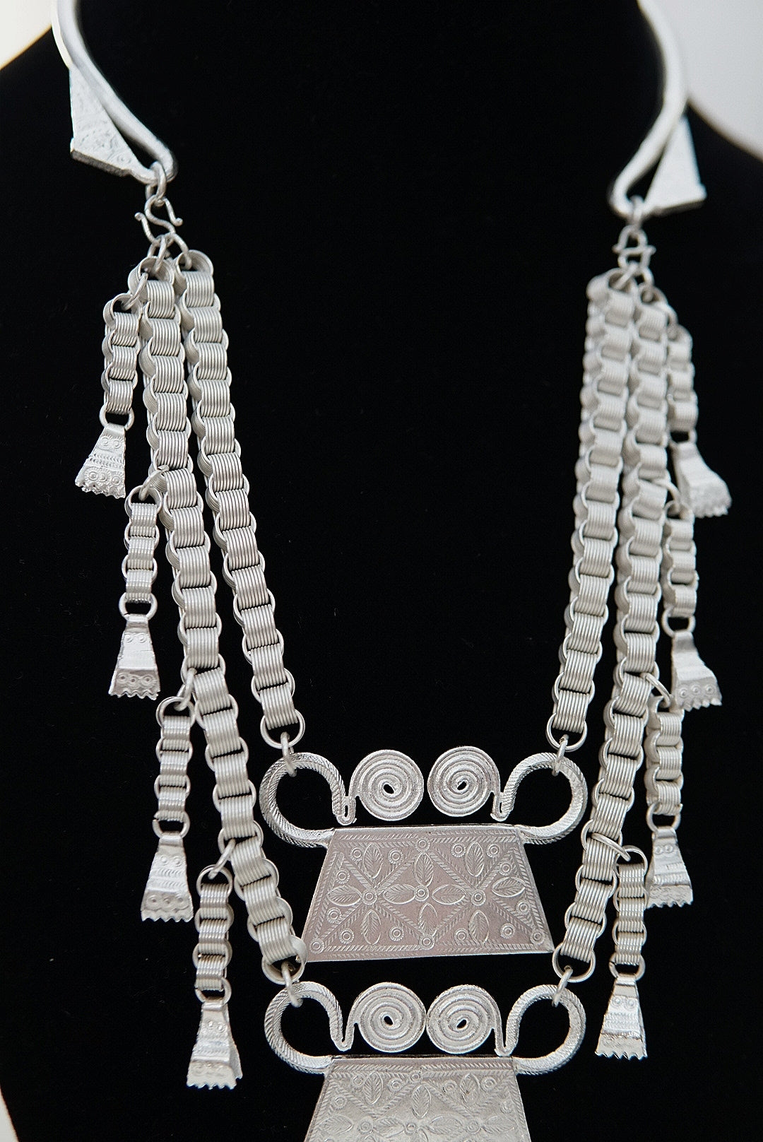 This double-layer soul lock xauv is a traditional Hmong necklace designed for children. Made with enclosure hooks for easy wear and removal. Perfect for ages 3-6 years old.