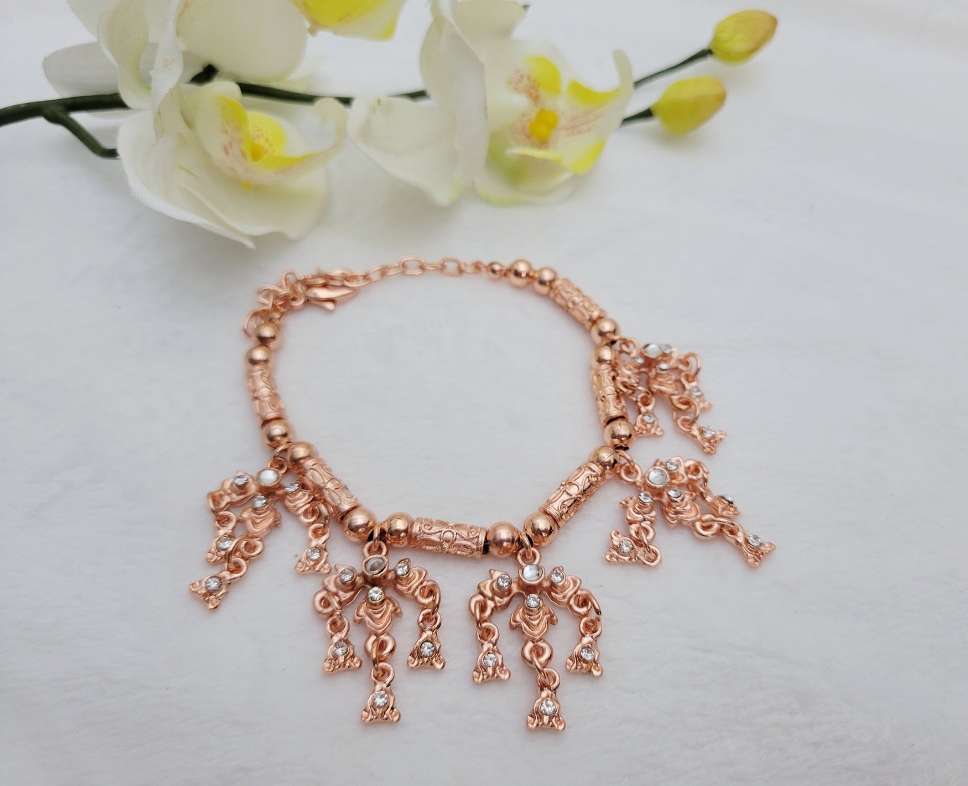 White Rose Gold Dangle Bracelet
